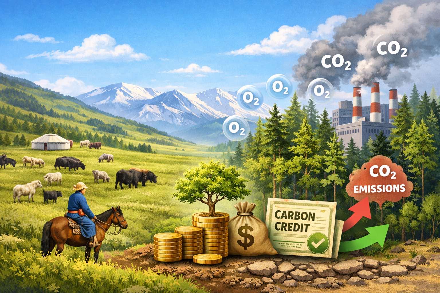 Хамгийн энгийнээр үүнийг “Агаар цэвэршүүлсний урамшуулал” гэж ойлгож болно. Дэлхийн дулааралд гол нөлөөлөгч нь нүүрсхүчлийн хий (CO₂ ). Үйлдвэрүүд болон автомашины хөдөлгүүрээс ялгардаг энэ хийг мод, хөрс, бэлчээр зэрэг байгалийн экосистем өөртөө шингээж, оронд нь хүчилтөрөгч (O₂) ялгаруулдаг.